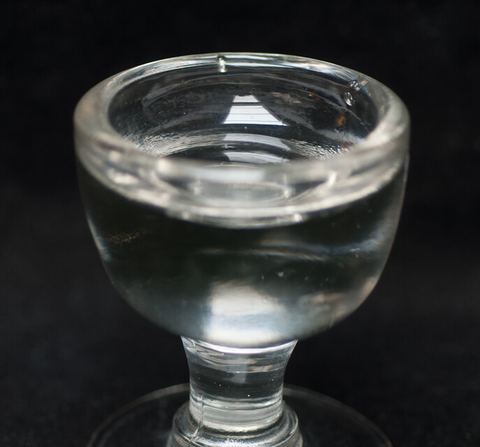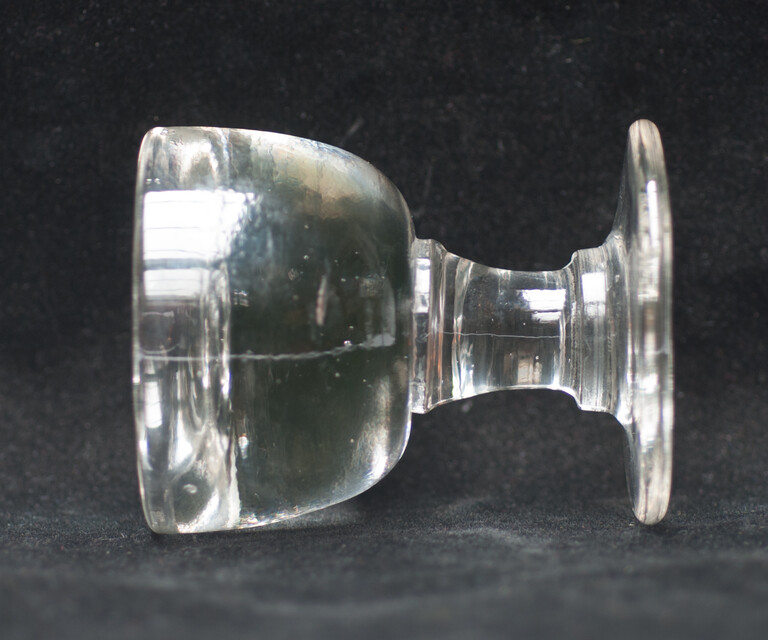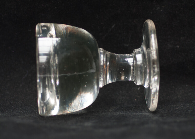 An Inn-keepers glass. High 7,5 cm. Wide 6 cm. Diameter foot 5,5 cm. Weight 225 gram. Mint condition. This type of glass can contain only a small amount of liquid. So when the inn-keeper wants to drink on the health of his customer he will not become drunk. This type of glass is rare.