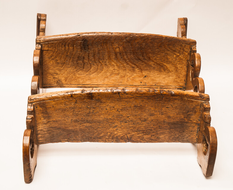 A bedstairs. High 61 cm. Wide 52 cm. Deep 26 cm. Oakwood. Two steps. On the back traces of green paint. From the collection a well known antique dealer in Amsterdam. In good general condition with several minor repairs and restorations. Holland around 1700.