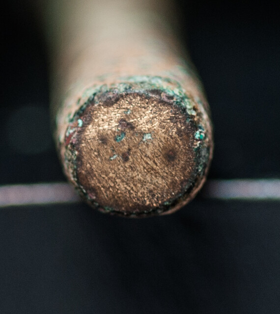 Five needles. Size between 12 and 16 cm. Bronze with beautiful green oxydation patina. The needles all five have a clear opening for the thread. The needles were found on Cyprus, a Roman colony around two centuries ante Christs birth. They are in a remarkably good condition. And extremely rare.