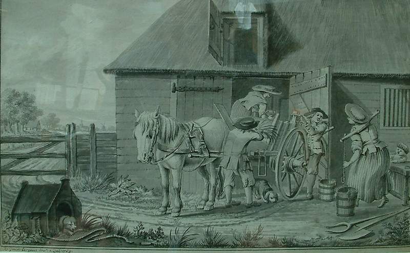 Drawing of a farmscene by Reinier Goudsbergen. 1789