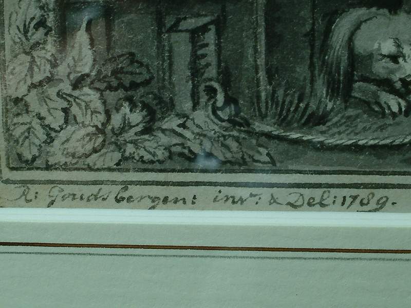 Pen, pencil and grey wash on paper. Signed and dated in the left lower corner "R:Goudsbergen inv.& Del: 1789". H: 18 cm. W: 30 cm. Framed.
