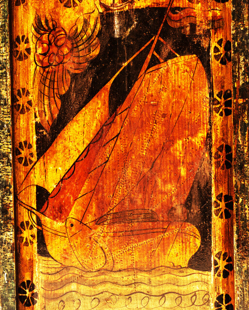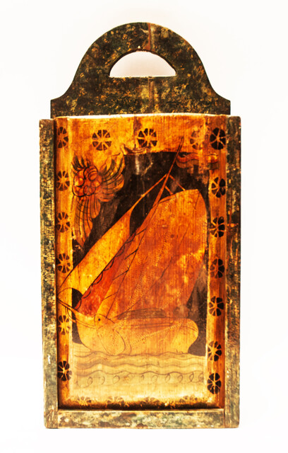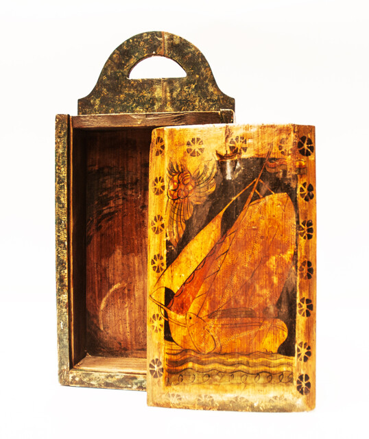 A Frisian schoolbox decorated with a sailing ship.