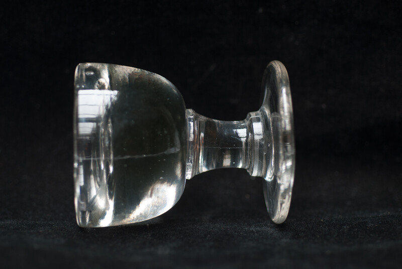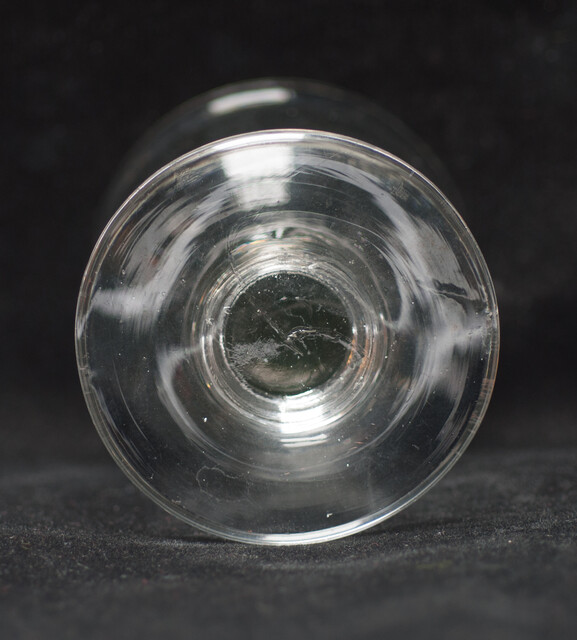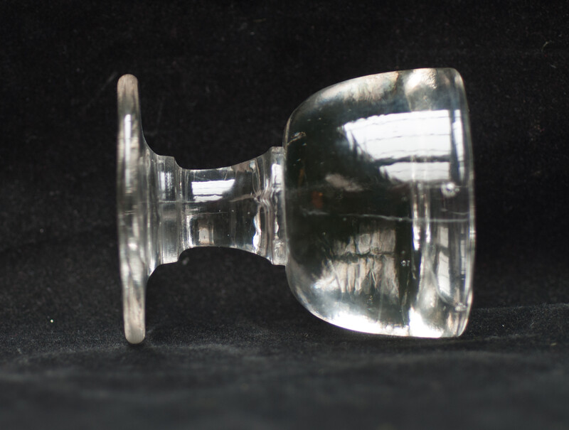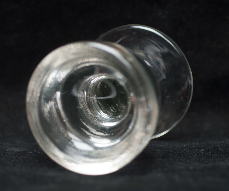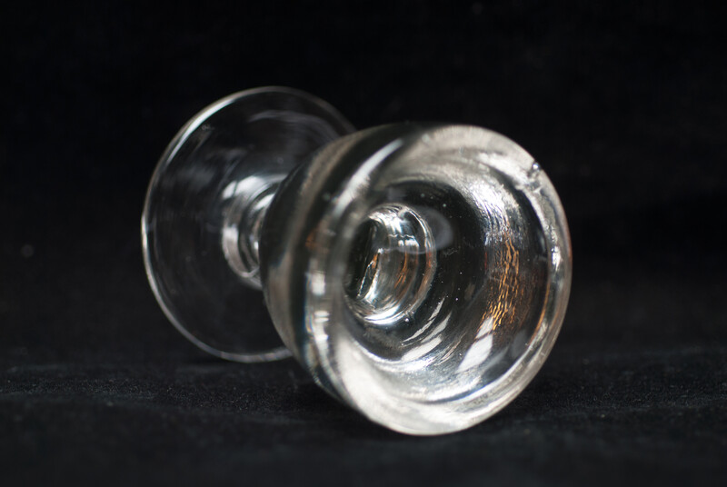 An Inn-keepers glass. High 7,5 cm. Wide 6 cm. Diameter foot 5,5 cm. Weight 225 gram. Mint condition. This type of glass can contain only a small amount of liquid. So when the inn-keeper wants to drink on the health of his customer he will not become drunk. This type of glass is rare.
