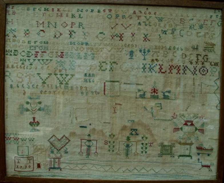 A Dutch sampler, dated 1790. 46 x 37 cm. Stained in places. Framed.