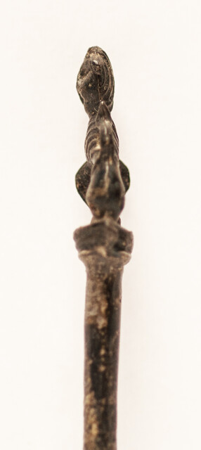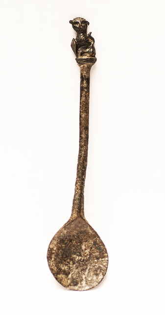 A sixteenth century pewter spoon with a mythical animal, possibly a lion.