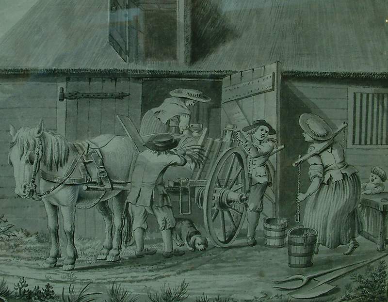 Drawing of a farmscene by Reinier Goudsbergen. 1789