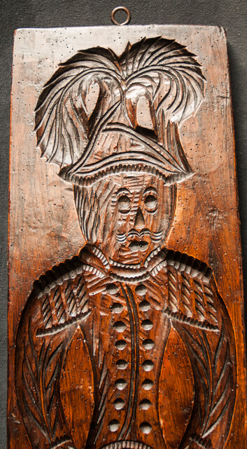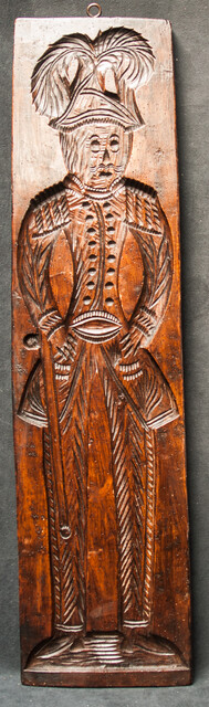 An enormous cookie mould. Long 98 cm. Wide 24,5 cm. Thick 4,5 cm. With a lady on one side and a man on the other. Moulds of this size are very rare. Low Countries 19th C.