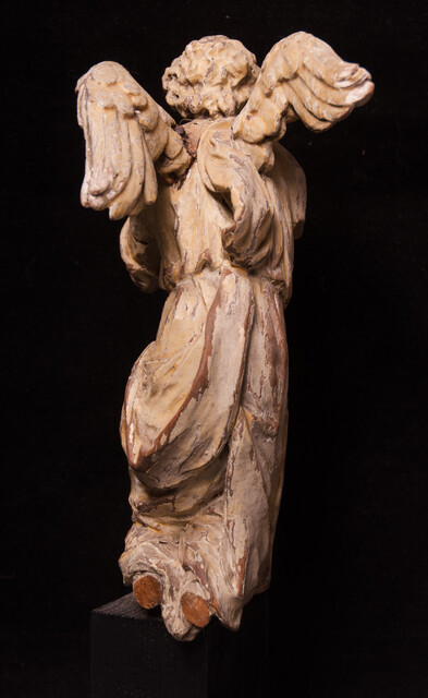 Two angels. Height (without piedestal) 20 cm. Extremely well carved , these angels date from the late 16th or early 17th century. Made of pinewood and painted white. Considering the age in remarkably good condition, with some minor signs of use. Southern Netherlands (Flanders), around 1700.